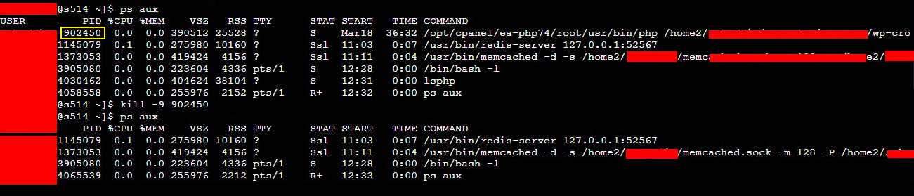 Ketika saya hapus manual melalui File Manager, file tersebut selalu saja kembali lagi ketika di refresh. Kemudian saya berkesimpulan ada script yg berjalan secara background di hostingan ini. Selanjutnya saya memilih ke mode terminal untuk mengecek script apa saja yang berjalan pada server ini, dengan mengetikkan: